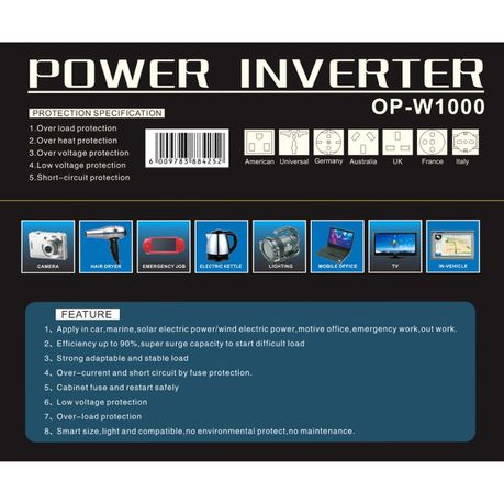 Omega OP-W1000 Power Inverter – Home Emergency or Car Installation